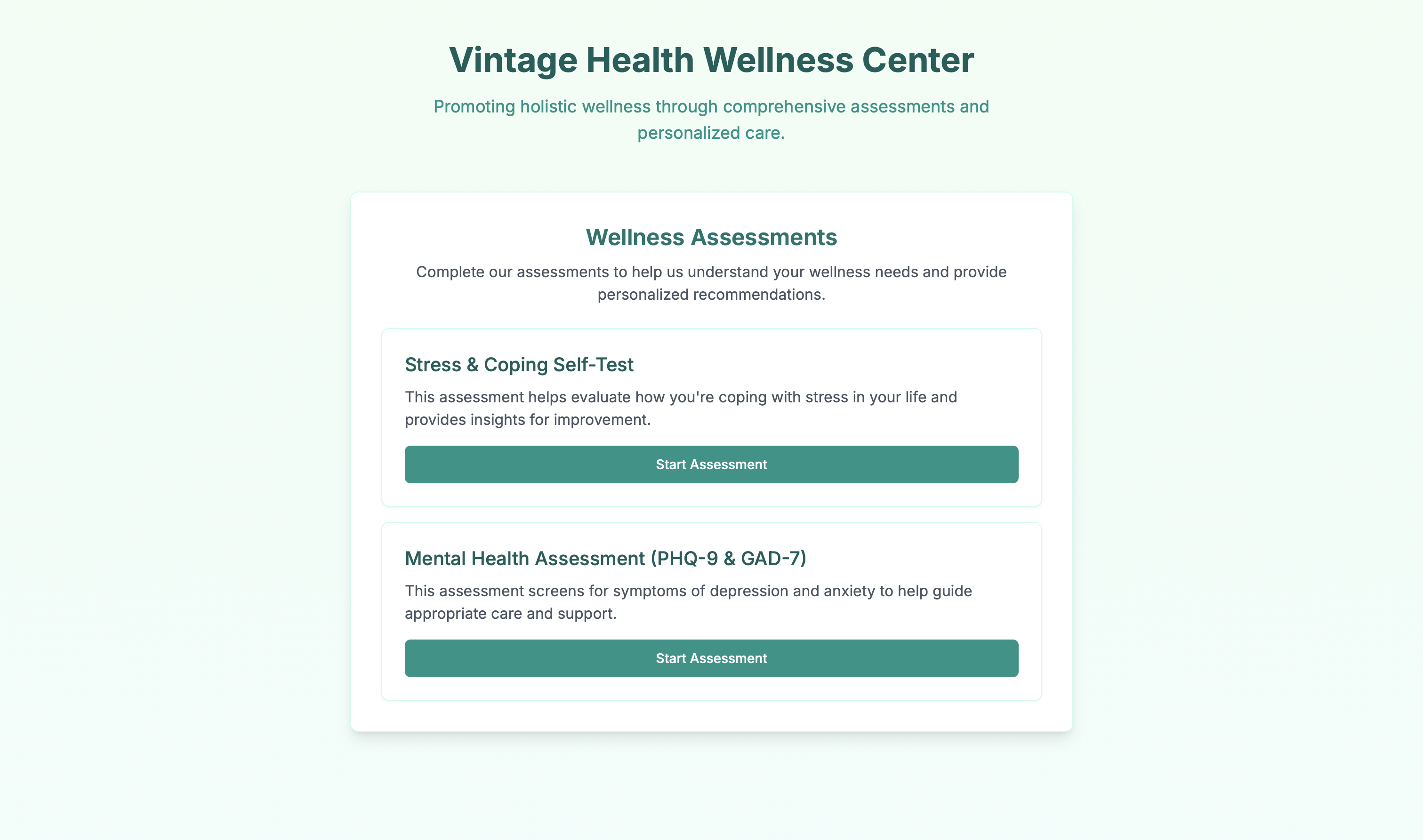 A wellness companion that helps clients understand and manage their mental health. Using clinically approved assessment tools, the app evaluates stress, anxiety, and depression levels — providing clients with scored insights to better track and address their emotional well-being.